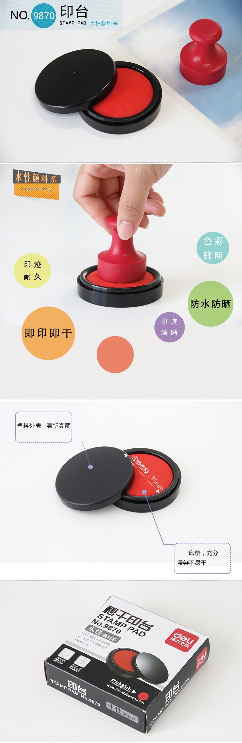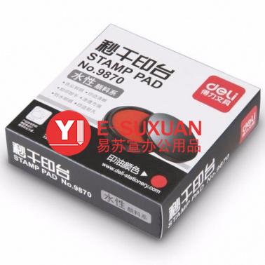 得力 9870 圓形塑殼秒干印臺 95mm 紅色