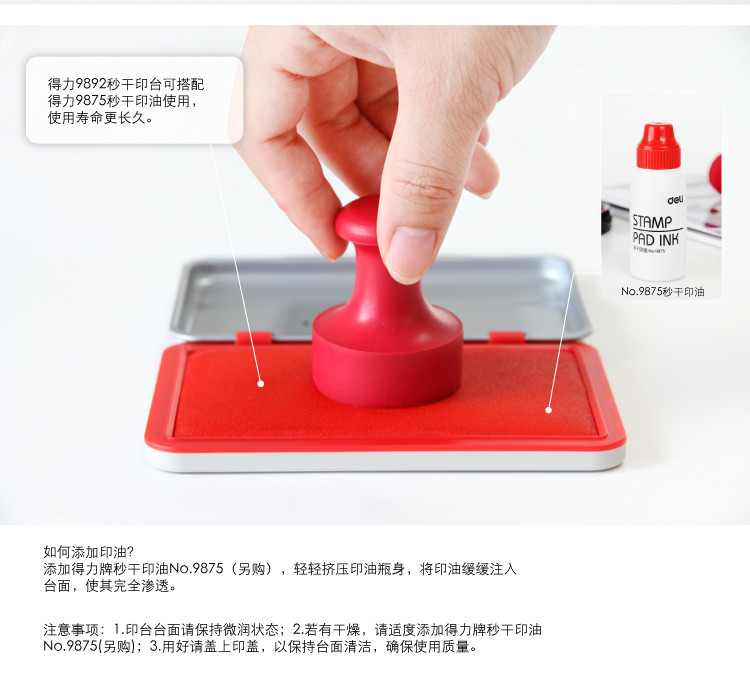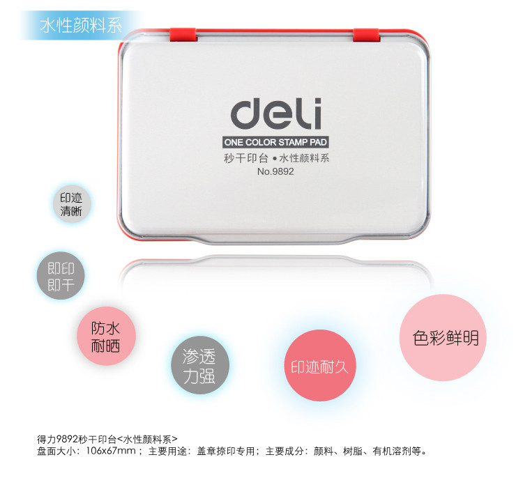 得力 9892 秒干快干印臺(tái) 67*107mm 紅色
