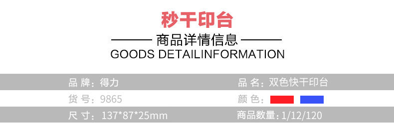 得力 9865 雙色快干印臺 混色
