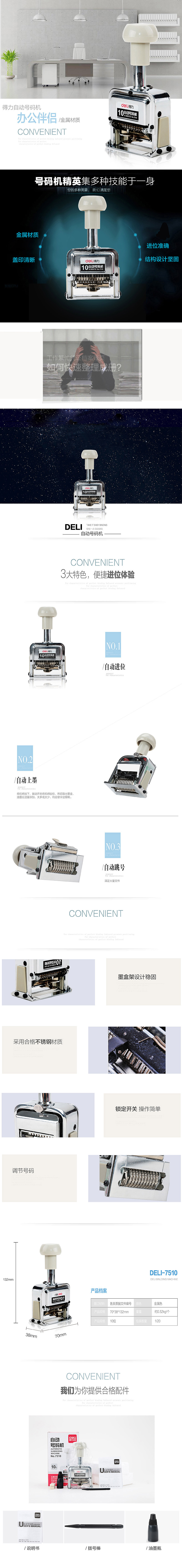 得力 7510 十位自動號碼機 白色