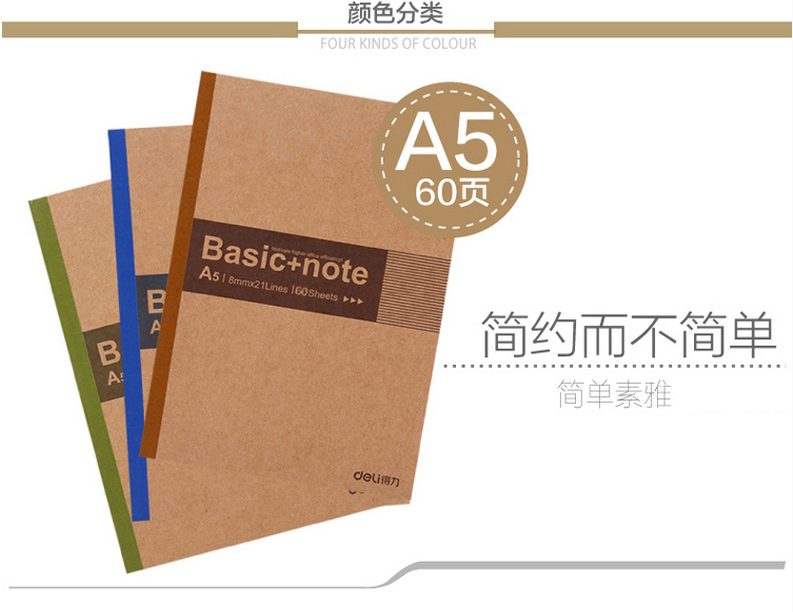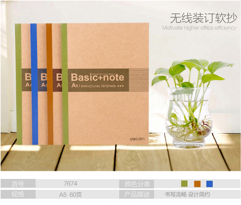 商品名稱:得力 7674 ??ㄏ盗袩o線裝訂本A5 混色 60頁