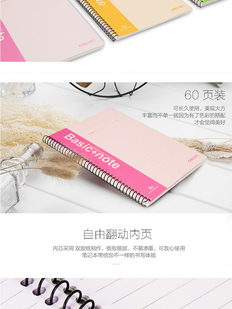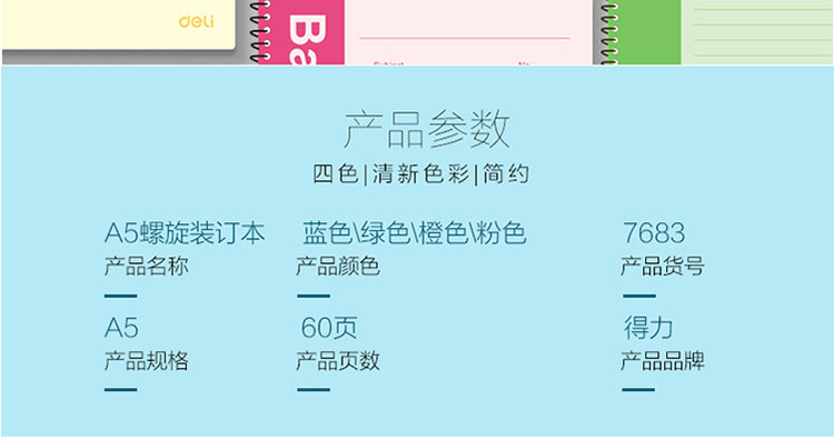 得力 7683 螺旋裝訂本 A5 混色 60頁