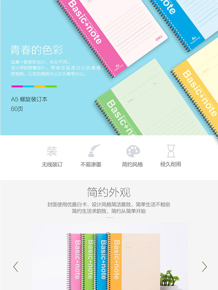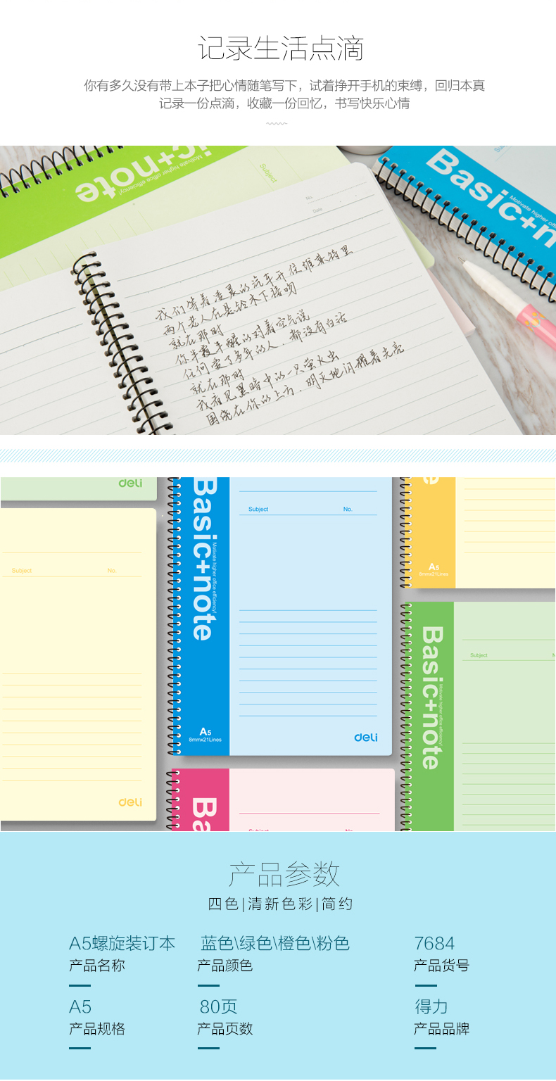 得力 7684 螺旋裝訂本 A5 混色 80頁