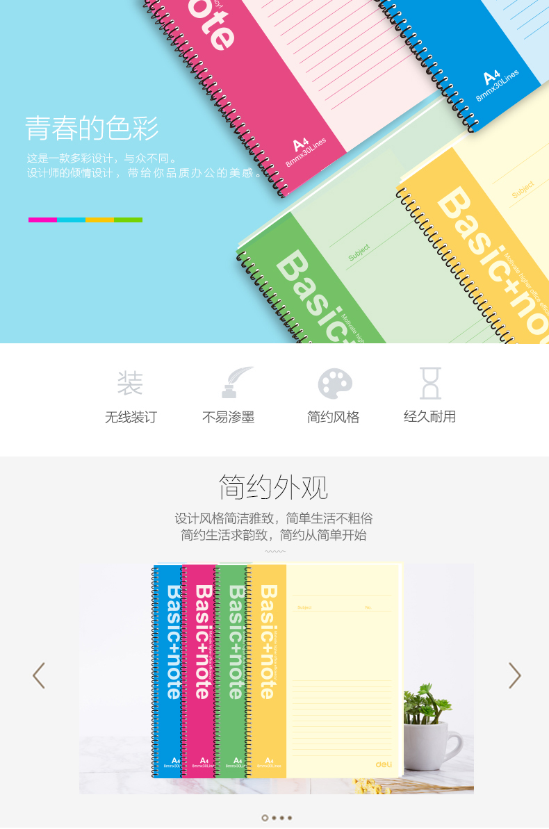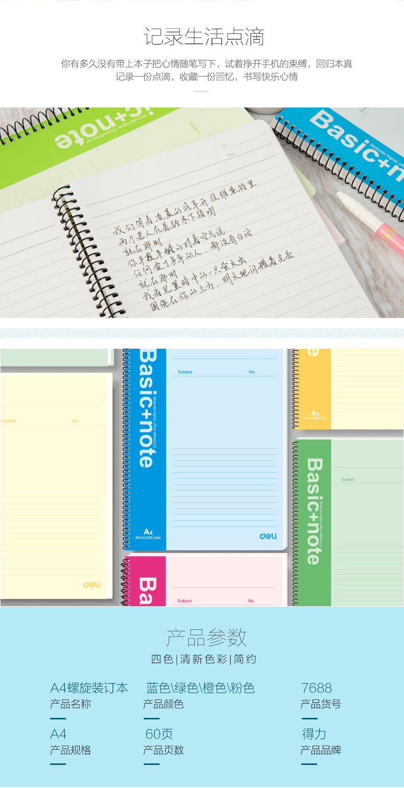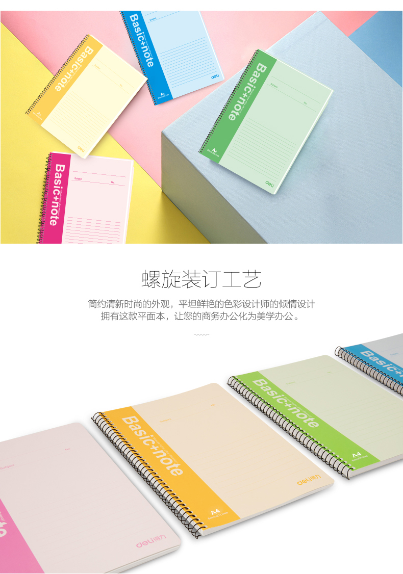 得力 7688 螺旋裝訂本 A4 混色 60頁