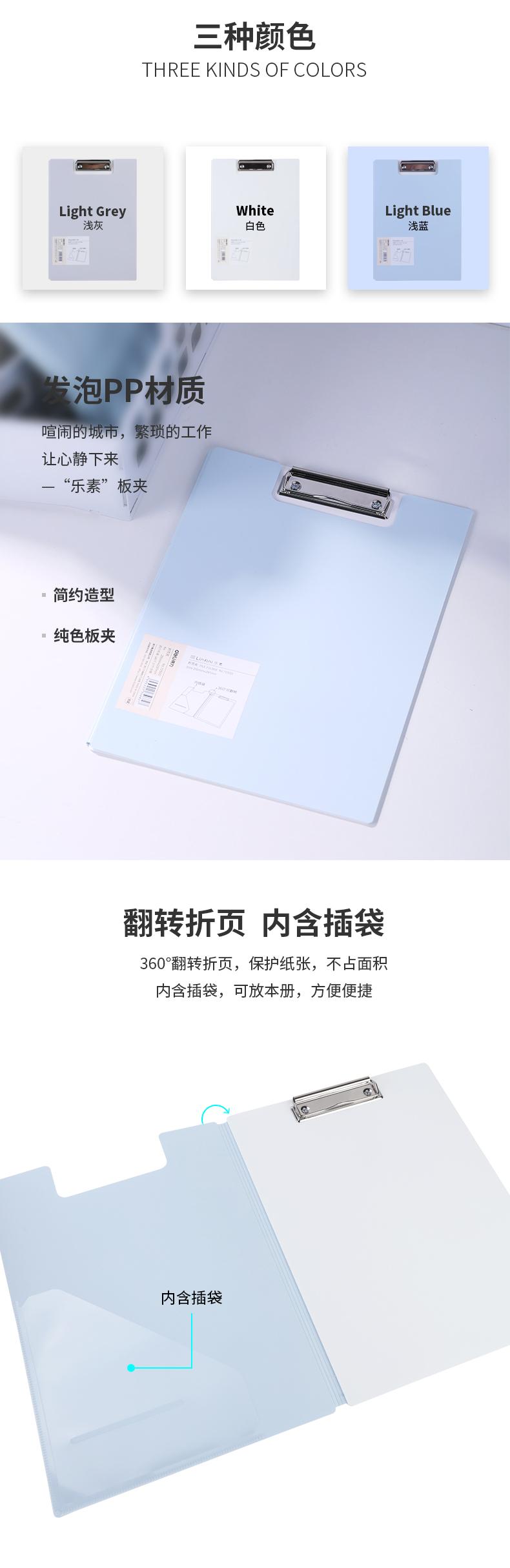 得力 72500 樂(lè)素系列豎式折頁(yè)板夾 A4 白色