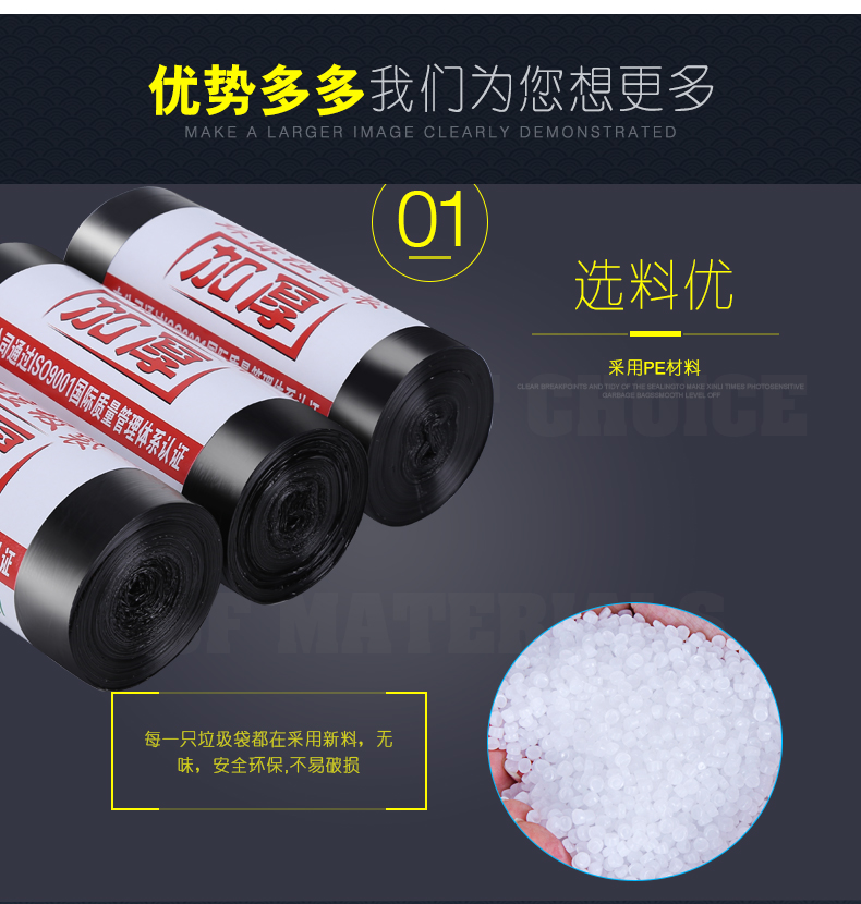 利得 60*80cm 加厚型垃圾袋 黑色 15只/卷