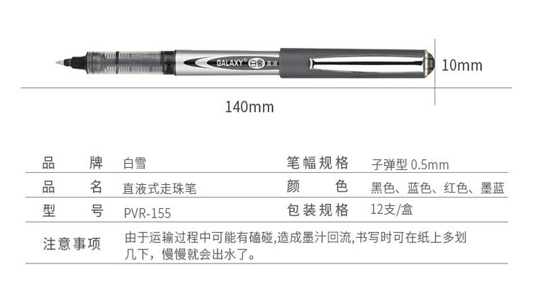 白雪 PVR-155 直液式走珠筆 0.5mm 黑色 12支/盒