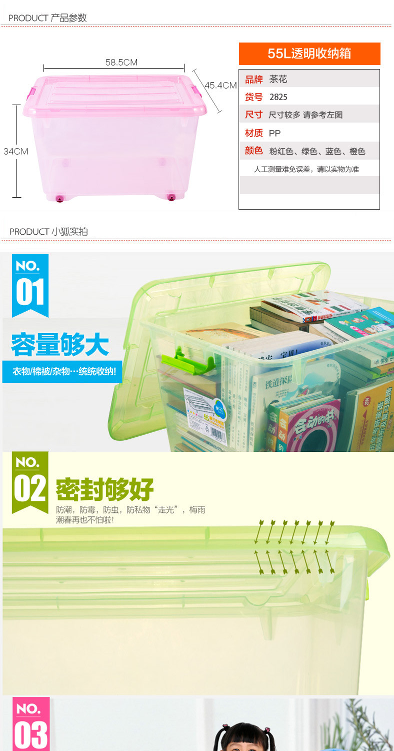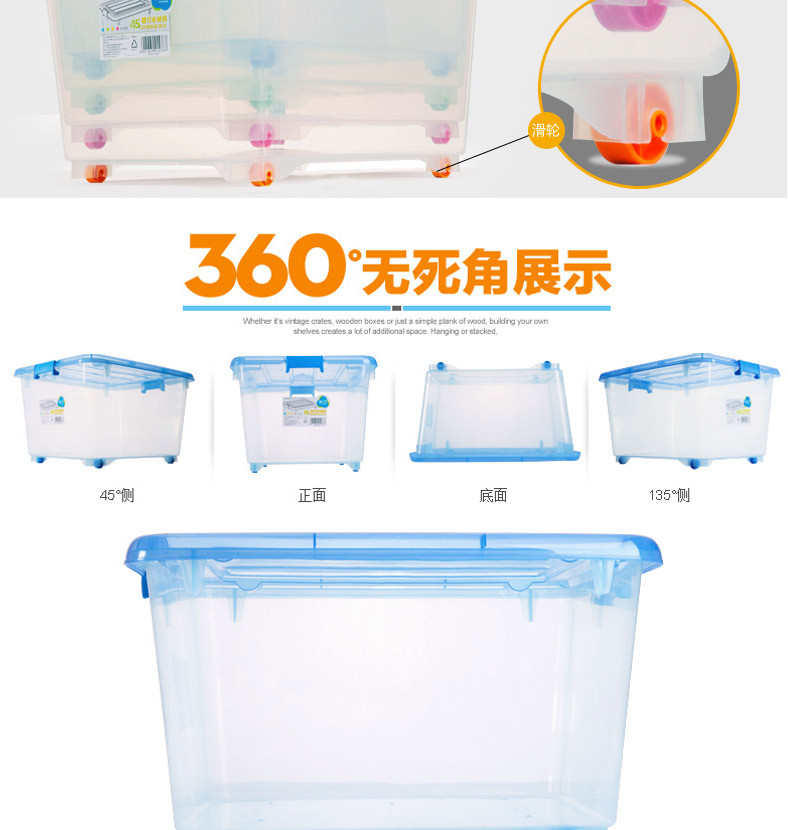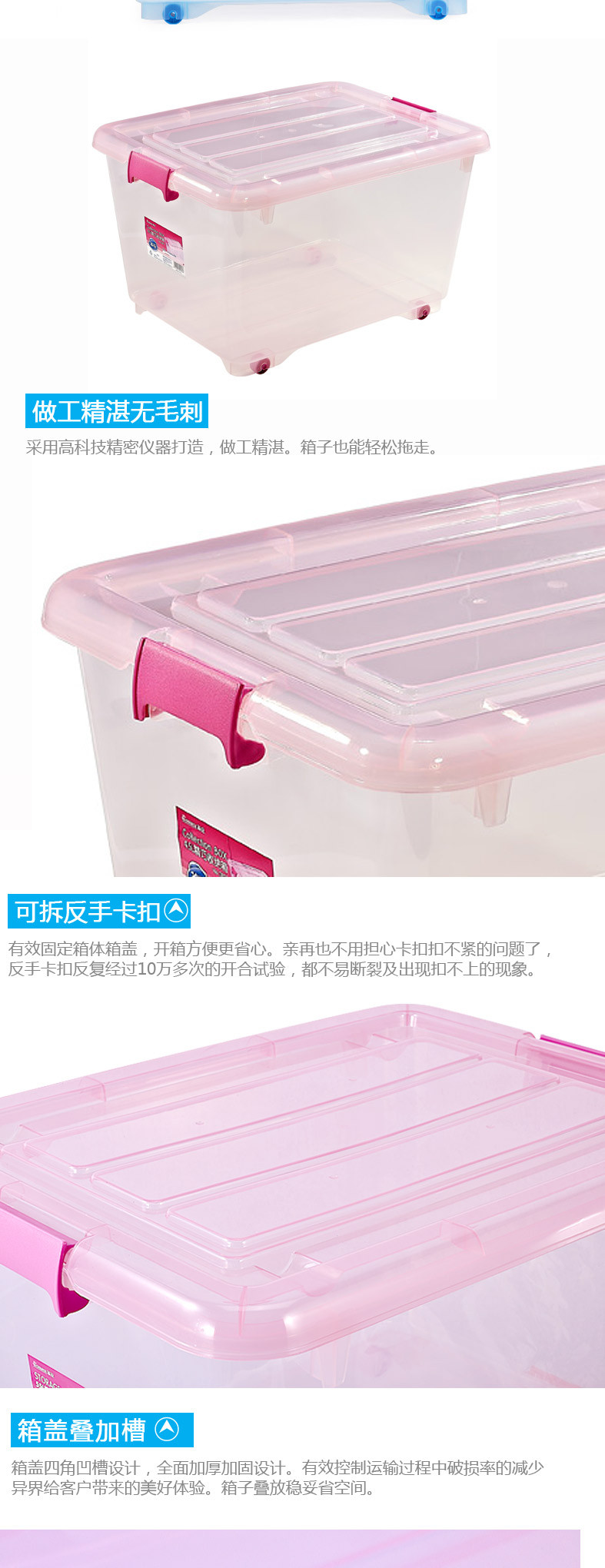 茶花 2825 透明塑料儲物收納箱帶滑輪 55L