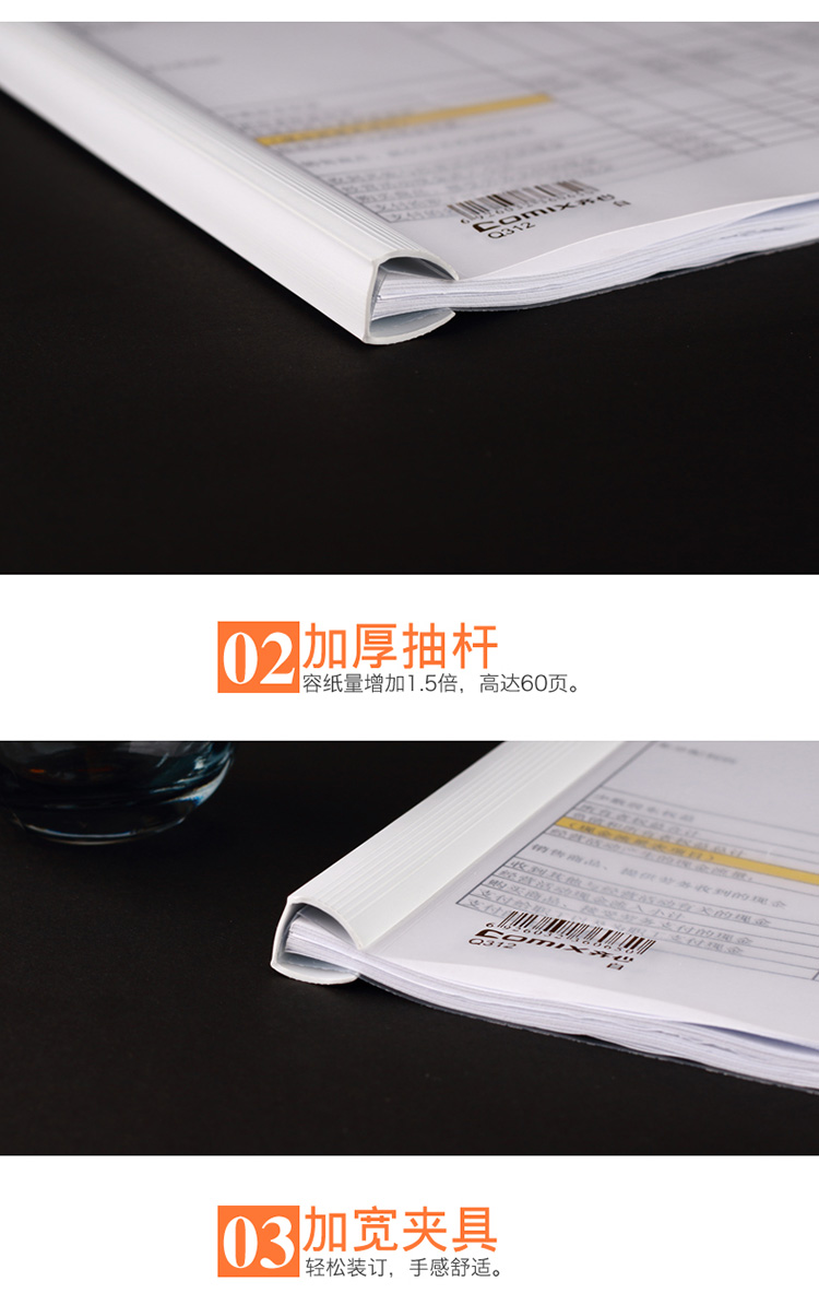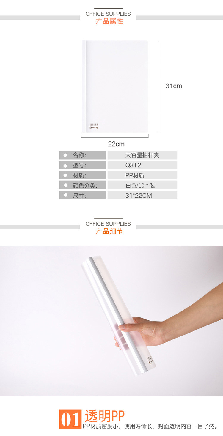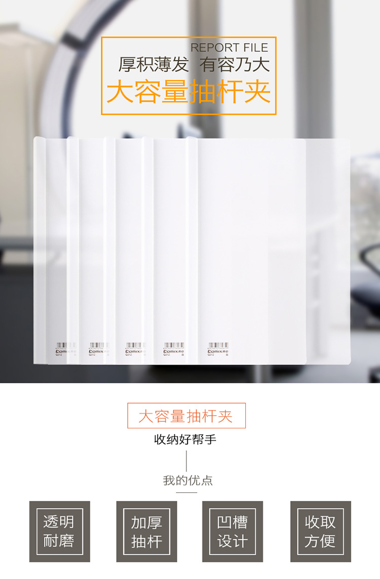齊心 Q312 加寬抽桿夾 A4 透明色 10只/包