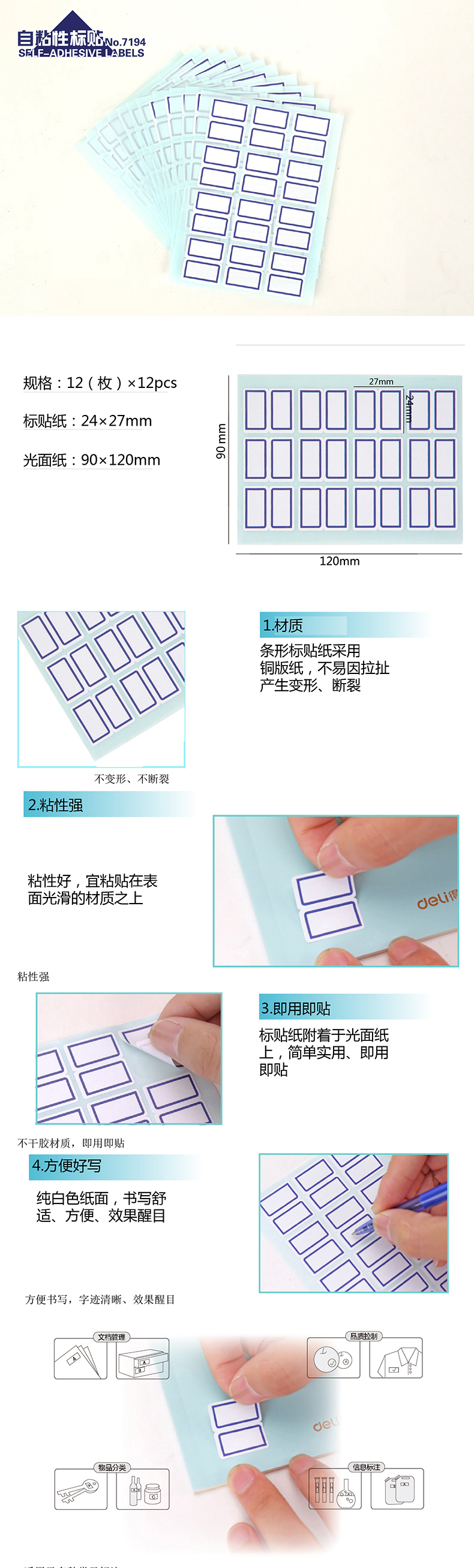 得力 7194 自粘性手寫(xiě)標(biāo)貼 24*27mm 藍(lán)框 144枚