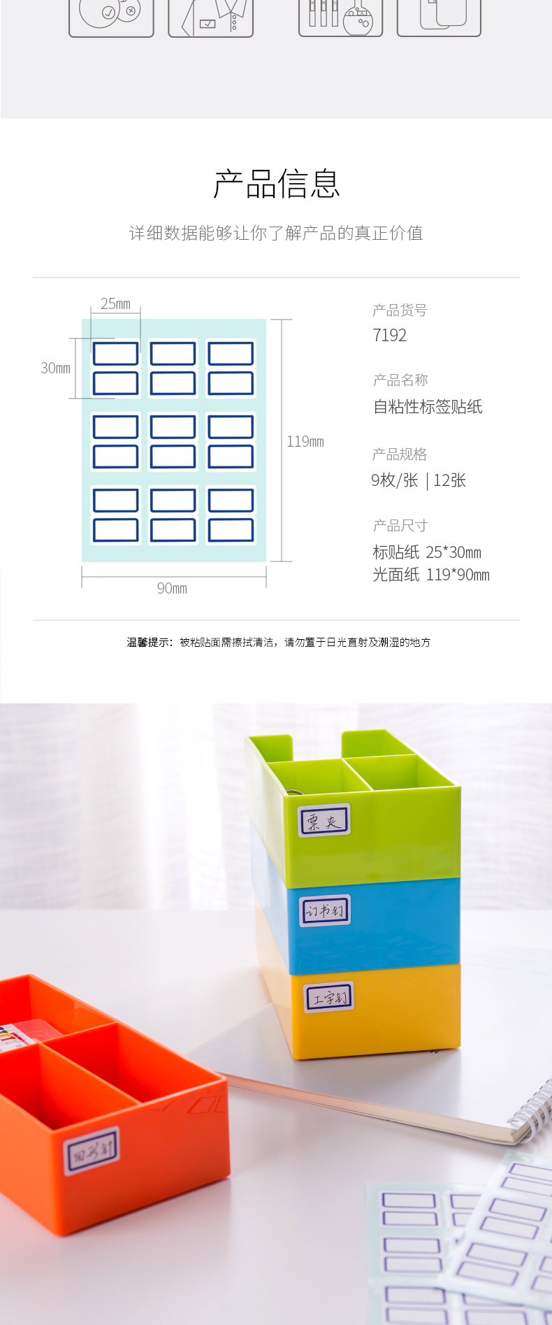 得力 7192 自粘性標(biāo)貼 25*30mm 藍(lán)框
