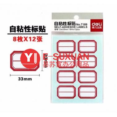 得力 7189 自粘性標(biāo)貼 23*33mm 紅框