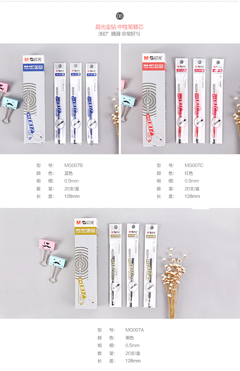 晨光 MG-007 鉆石中性筆筆芯 0.5mm 紅色 20支/盒