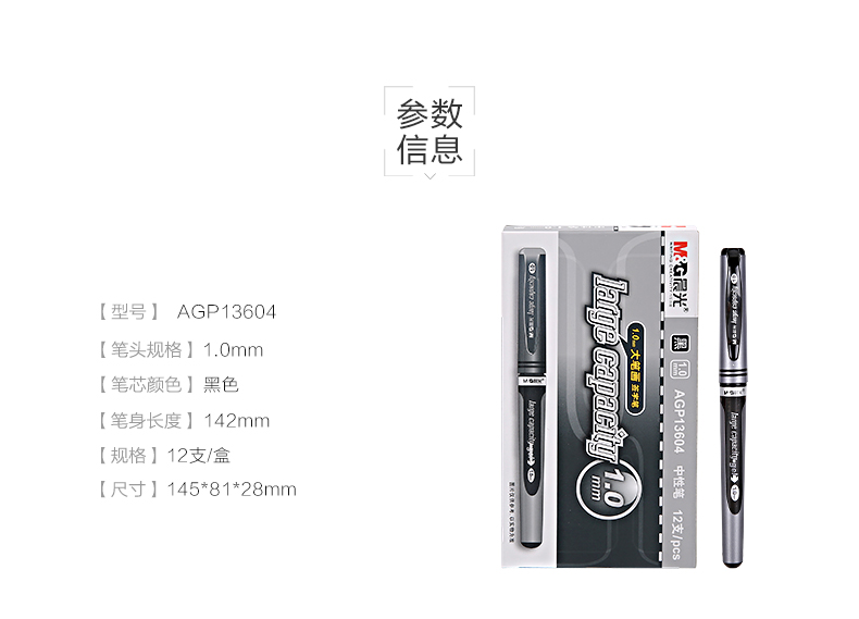 晨光 AGP-13604 商務(wù)簽字中性筆 1.0mm 黑色 12支/盒