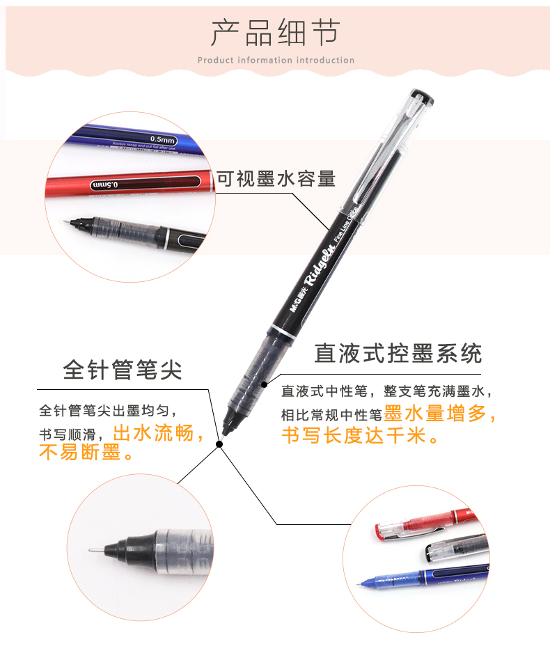 晨光 ARP41801 直液式全針管中性筆水筆 0.5mm 黑色 12支/盒
