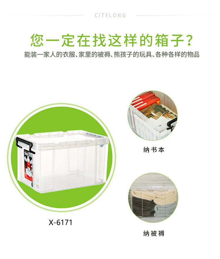 禧天龍 X-6171 塑料收納整理箱 720*492*384mm 透明 96L