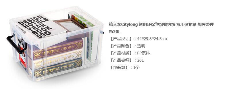 禧天龍 X-6069 塑料收納整理箱 440*298*243mm 透明 20L
