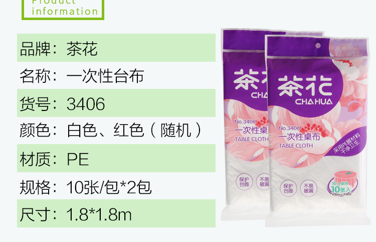 茶花 3406 一次性塑料桌布加厚型 10張/袋