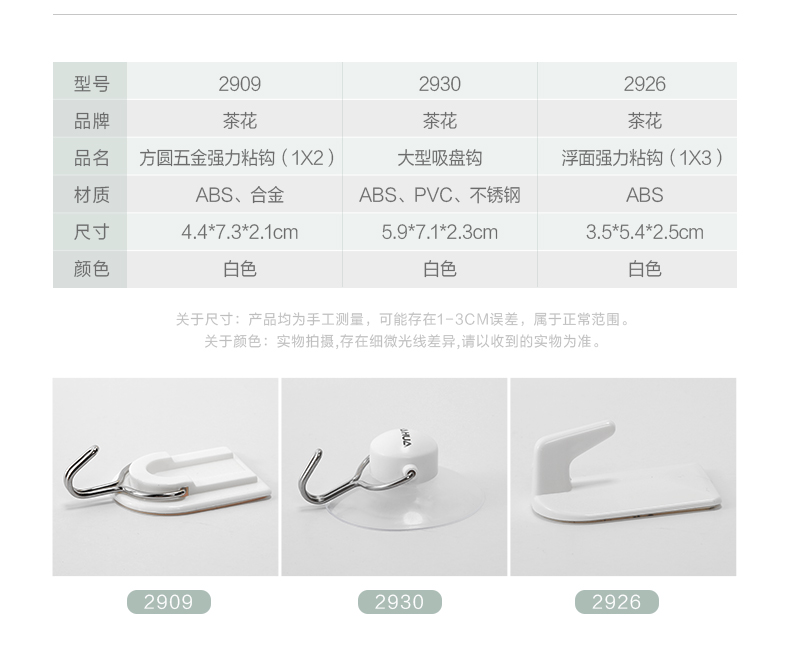 茶花 2909 方圓五金強力型掛鉤 2只裝