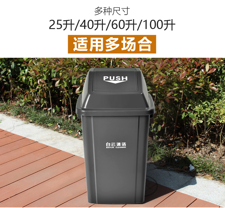 白云 AF07311 搖蓋式清潔垃圾桶 40L 深灰色