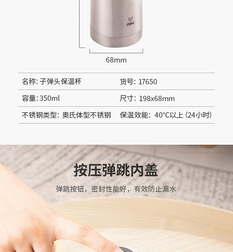 得力 17650 不銹鋼保溫杯 350ml