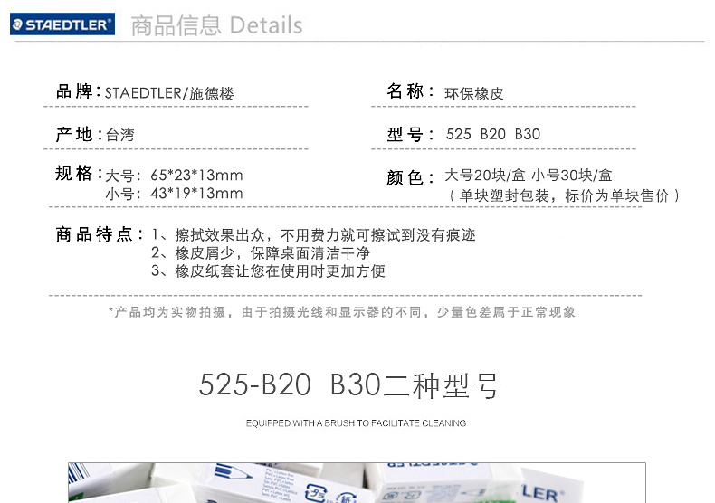 施德樓 525 B30 環(huán)保無毒不含PVC橡皮擦
