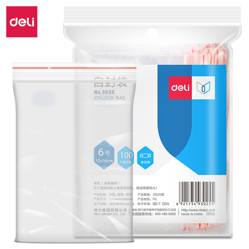 得力 3029 自封袋10號(hào) 340*240*0.04mm 透明色 100個(gè)/包