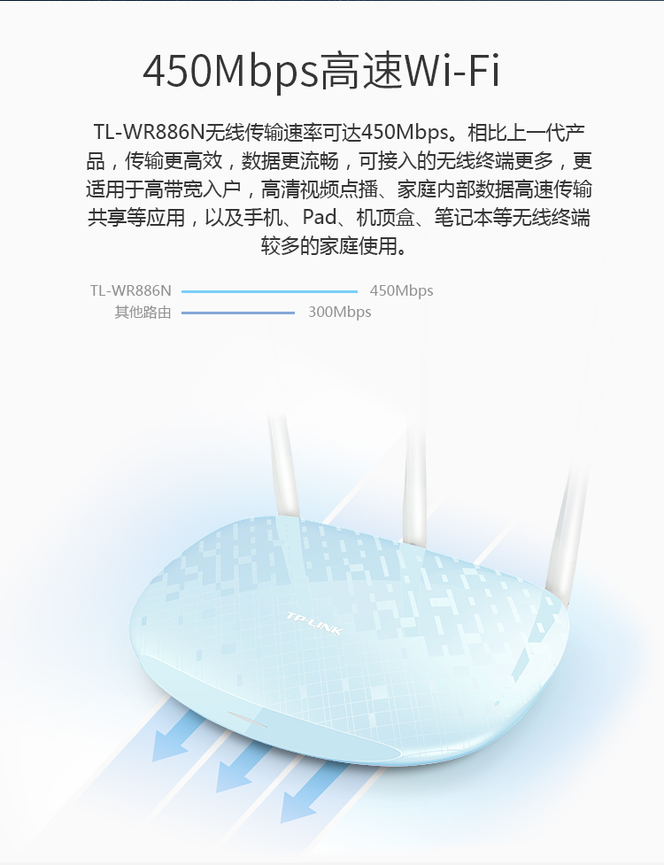 TP-LINK TL-WR886N 450M無(wú)線路由器Wifi 寶藍(lán)色