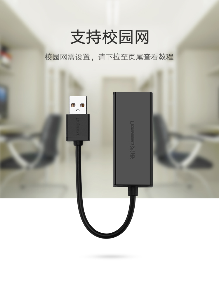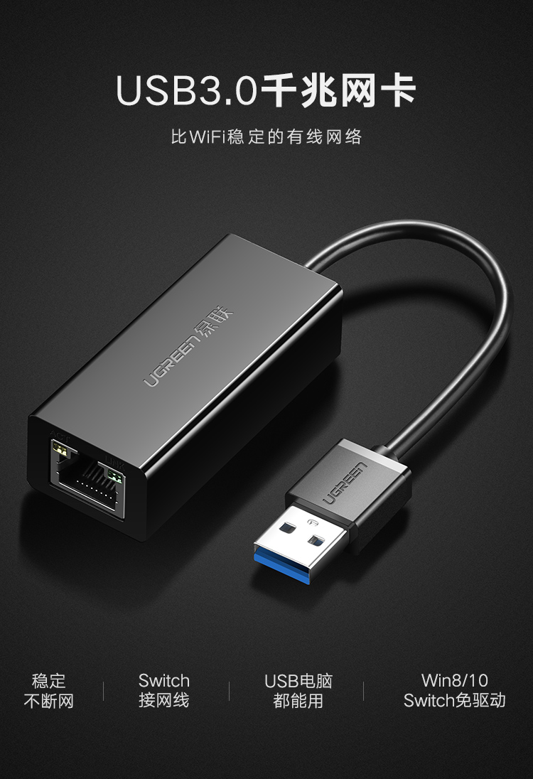 綠聯(lián) 20256 千兆有線網(wǎng)卡 USB轉(zhuǎn)RJ45網(wǎng)線接口 黑色