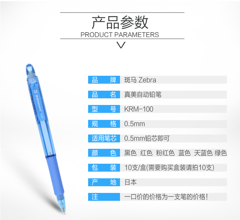 斑馬 KRM-100-BK 自動鉛筆 0.5mm 黑色 10支/盒