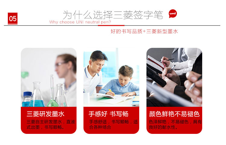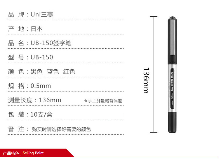 三菱 UB-150 透視耐水性水筆/走珠筆 0.5mm 紅色 10支/盒
