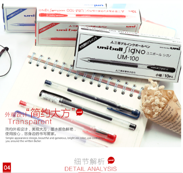三菱 UM-100 雙珠水筆/啫哩筆 0.5mm 黑色 10支/盒