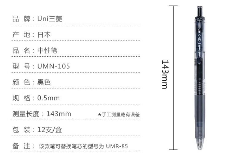三菱 UMN-105 按制中性筆 0.5mm 黑色 12支/盒