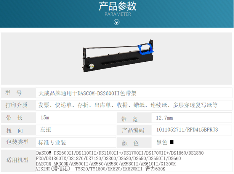 天威 DS2600II 色帶框 21m*12.7mm 黑色