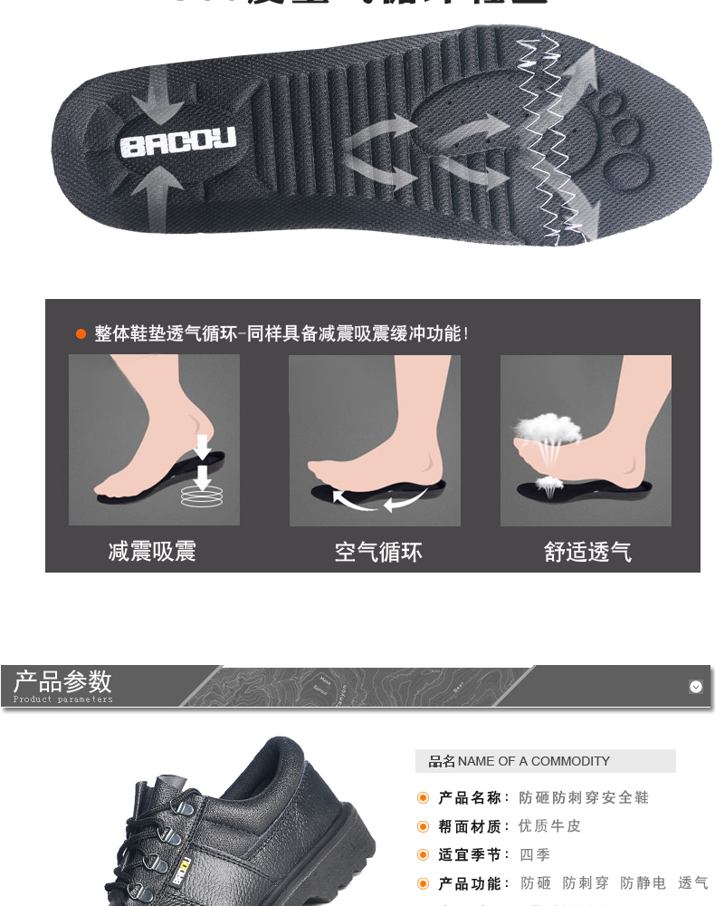 霍尼韋爾 SHBC00102 防靜電防砸防穿刺安全鞋 35碼 黑色 10雙/箱
