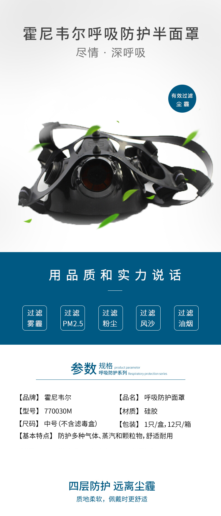 霍尼韋爾 770030 雙濾盒硅膠半面罩 中號 1只裝