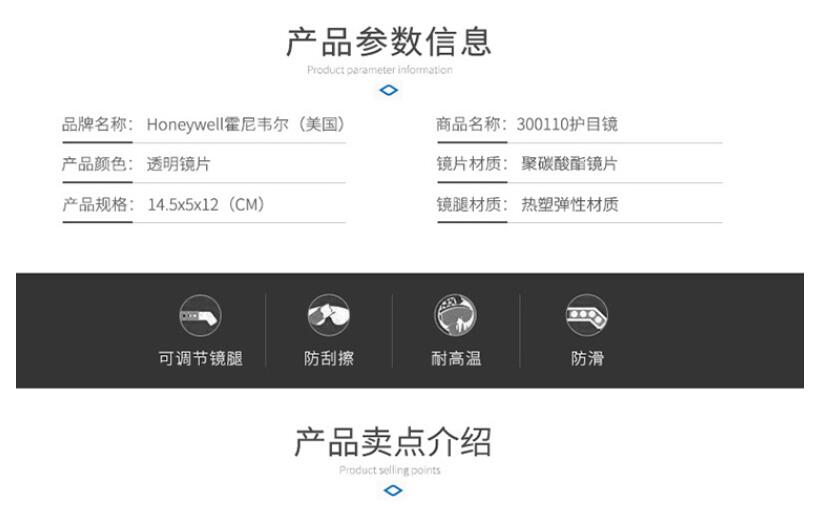 霍尼韋爾 300110 耐刮擦防霧眼鏡 透明白色 10副/盒