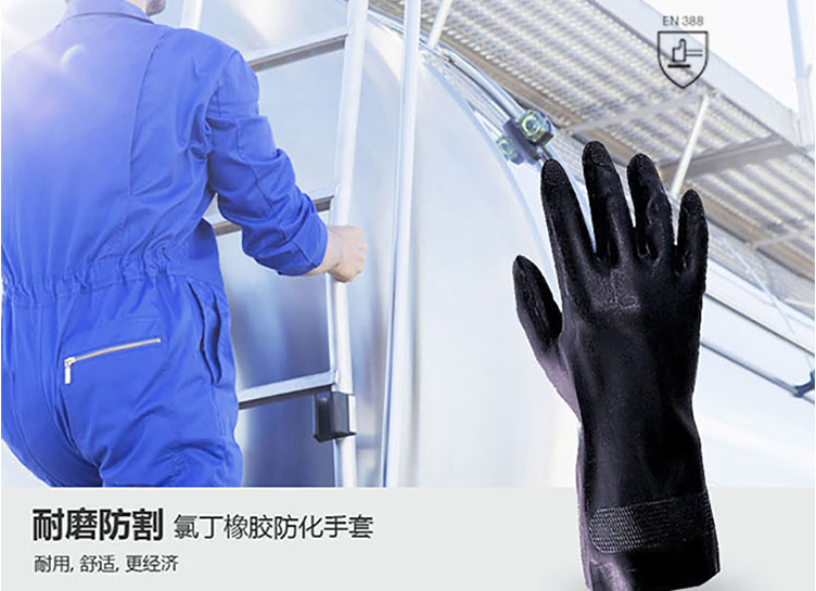霍尼韋爾 2095020 經(jīng)典款氯丁橡膠防化手套 黑色 08碼 10雙/包