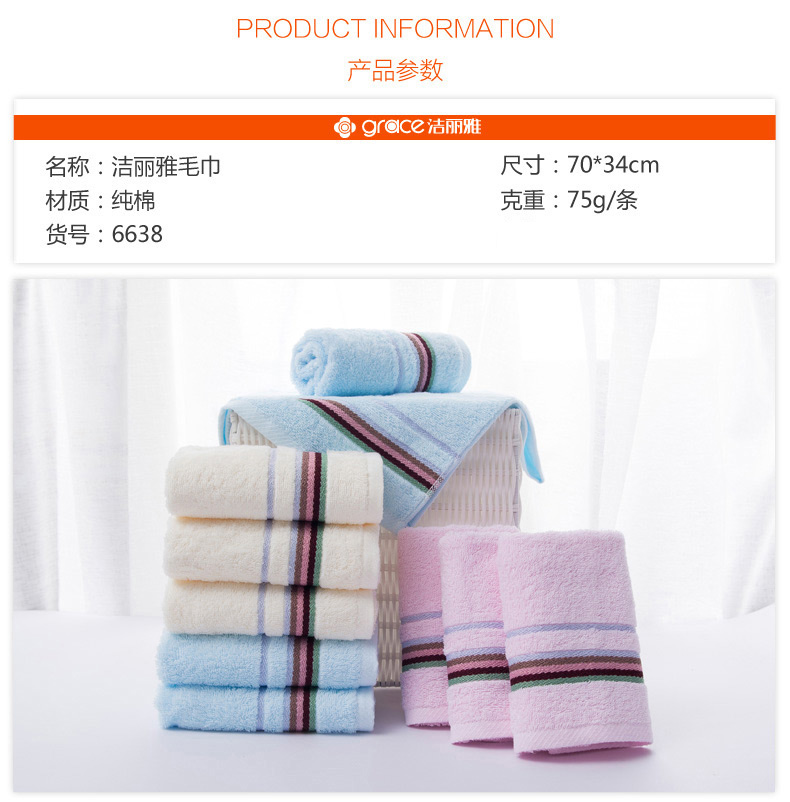 潔麗雅 6638 素色緞檔毛巾 70*34cm