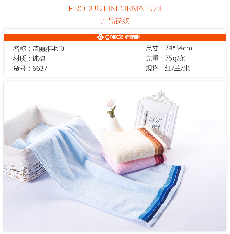 潔麗雅 6637 素色無(wú)捻緞檔毛巾 74*34cm