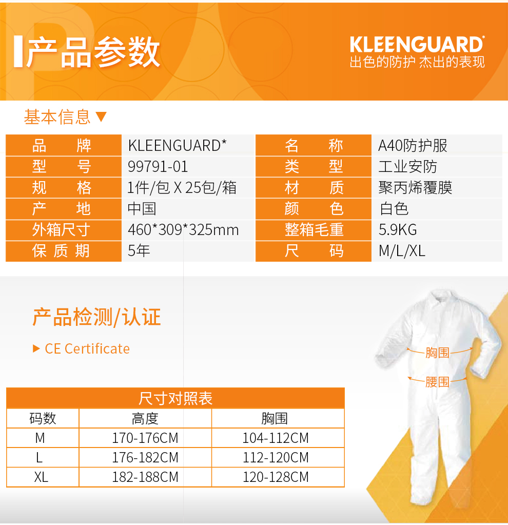 金佰利 99791 勁衛(wèi)液體和微粒隔離防護(hù)服 A40 中號(hào)