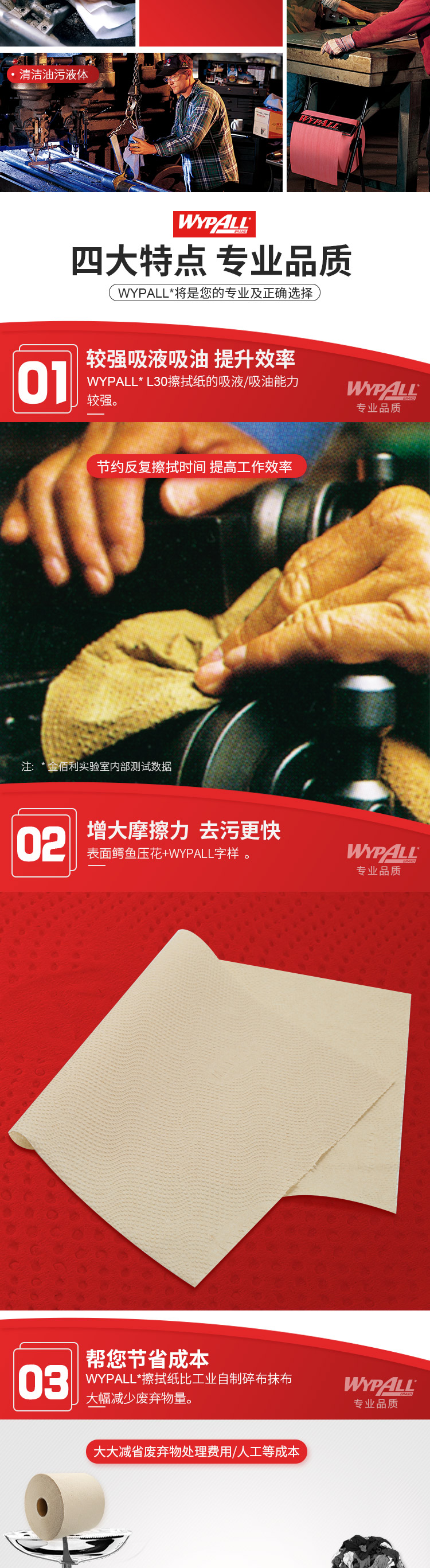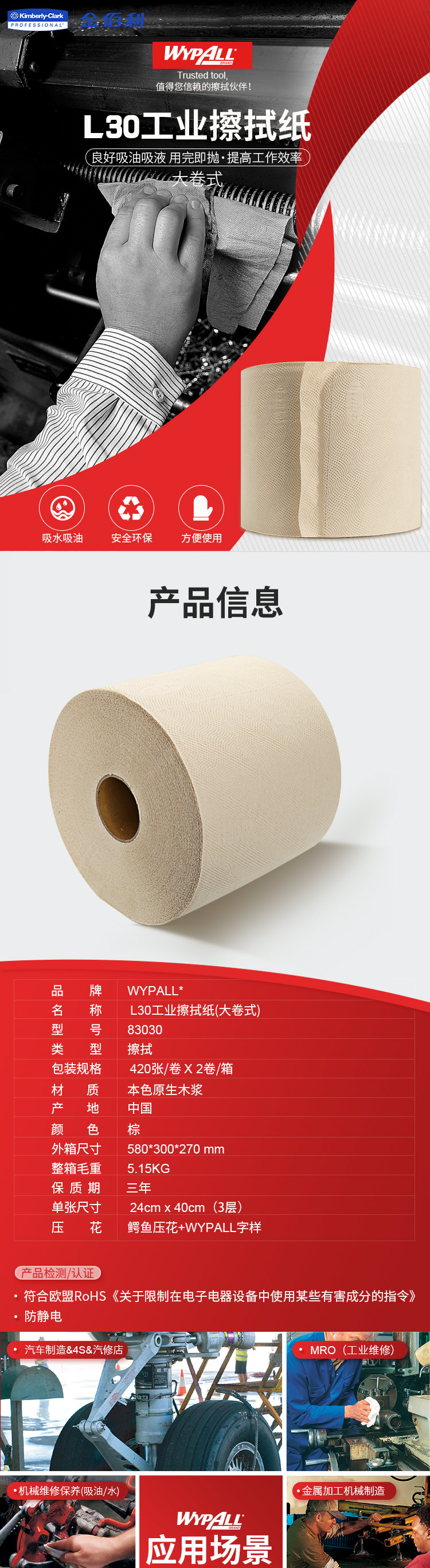金佰利 83030 工業(yè)擦拭紙L30大卷式 420張/卷 2卷/箱