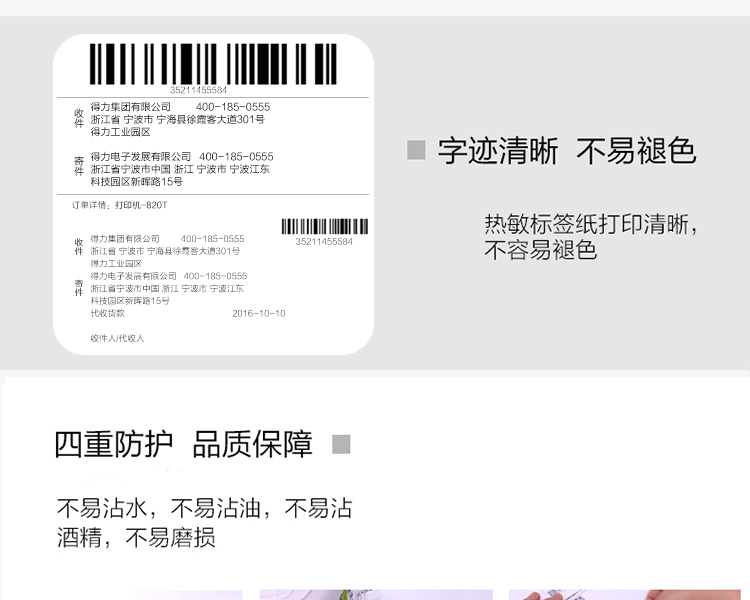 得力 11870 萊茵河長(zhǎng)效三防熱敏標(biāo)簽紙 100*100mm 白色 500張/卷