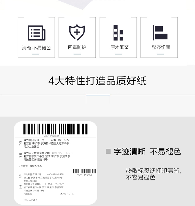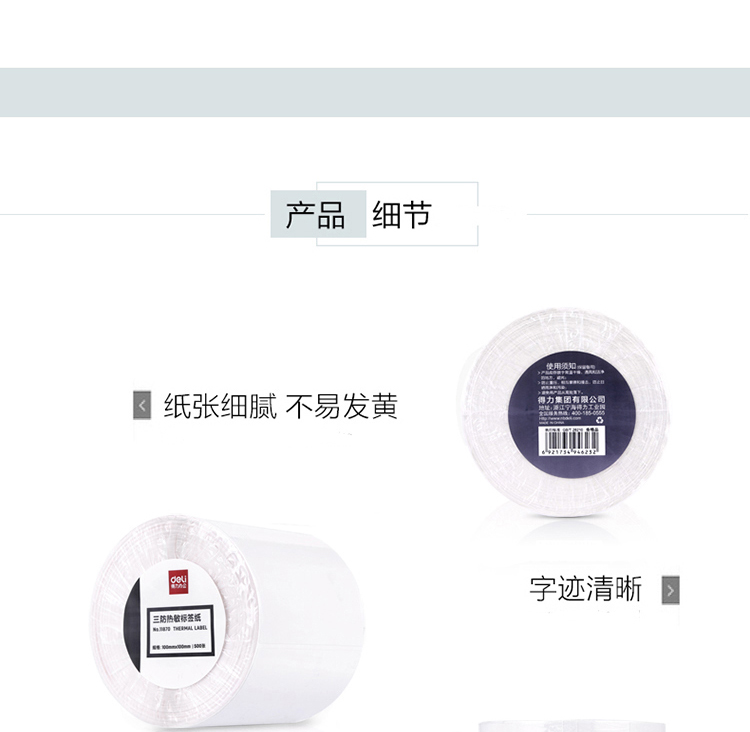得力 11873 萊茵河長效三防熱敏標(biāo)簽紙 40*30mm 白色 800張/卷