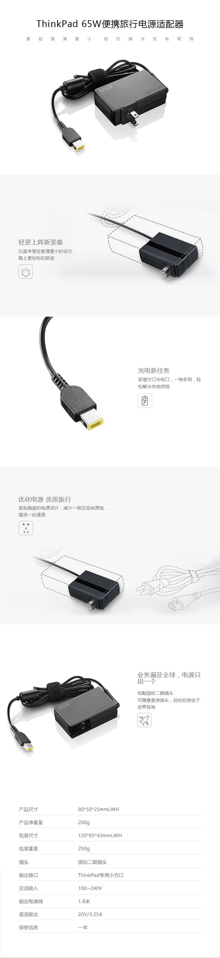 聯(lián)想 4X20H15595 方口便攜旅行電源適配器 65W