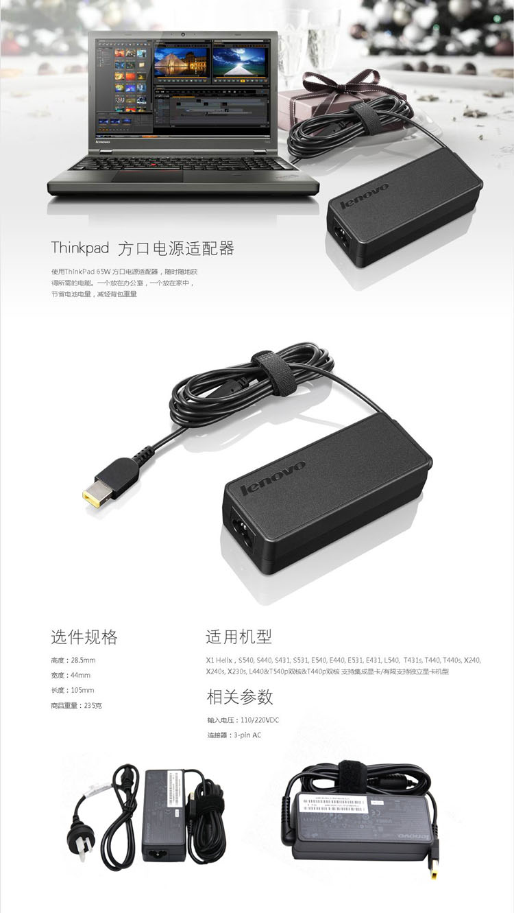 聯(lián)想ThinkPad 0B47488 方口電源適配器 65W