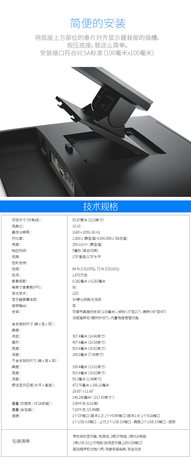 戴爾DELL P2217 液晶電腦顯示器 22英寸 黑色