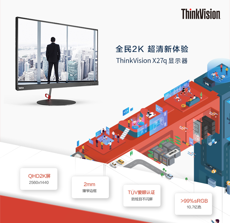聯(lián)想ThinkVision X27q 液晶電腦顯示器 27英寸(HDMI/DP接口)