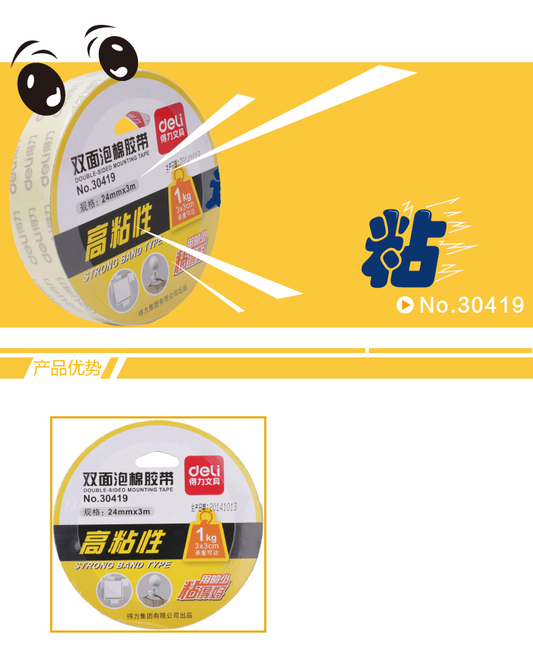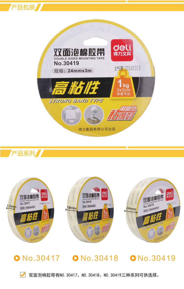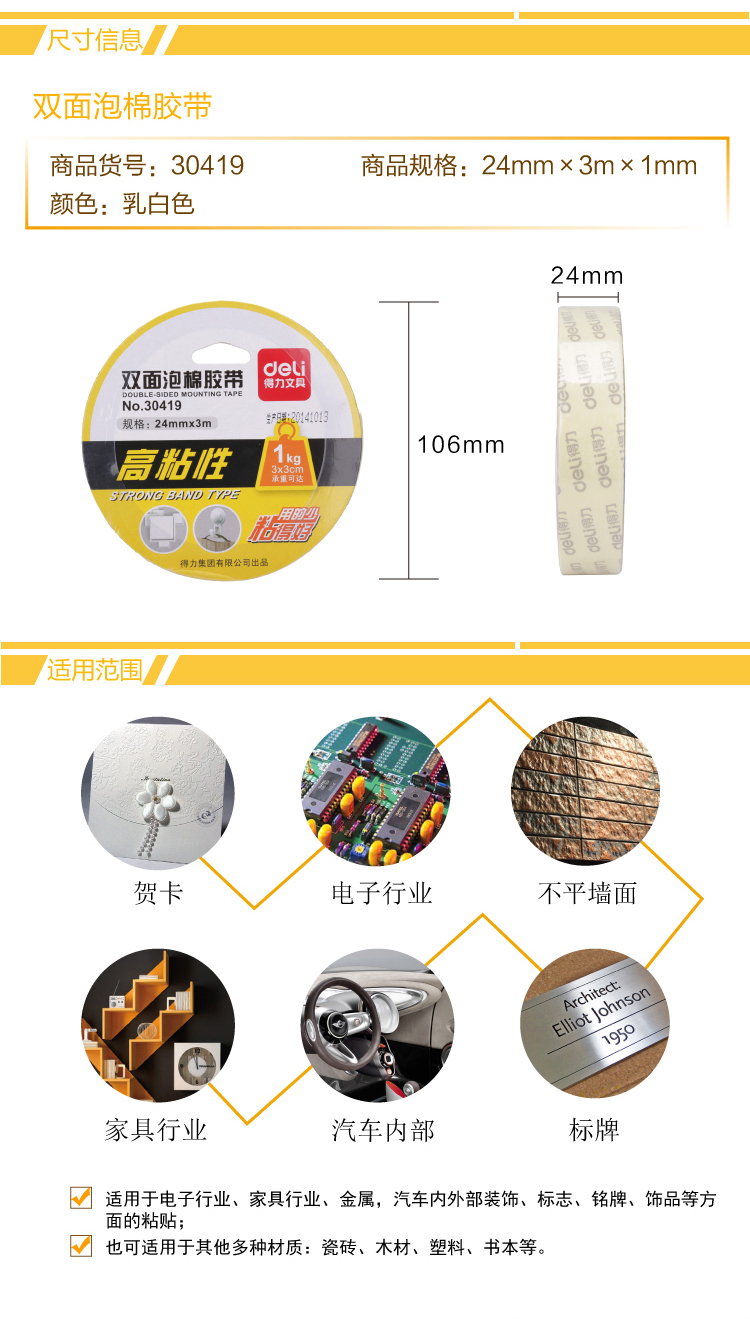 得力 30419 PE雙面泡棉膠帶 24mm*3m 白色