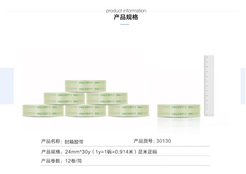 得力 30130 封箱膠帶 24mm*30y 高透 按卷銷售
